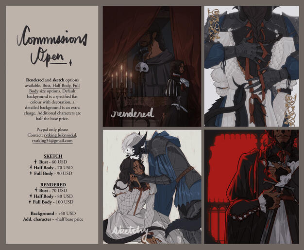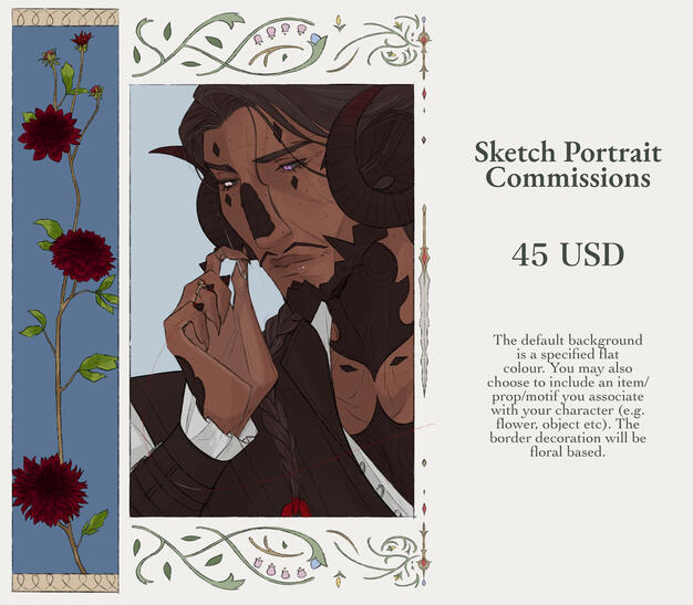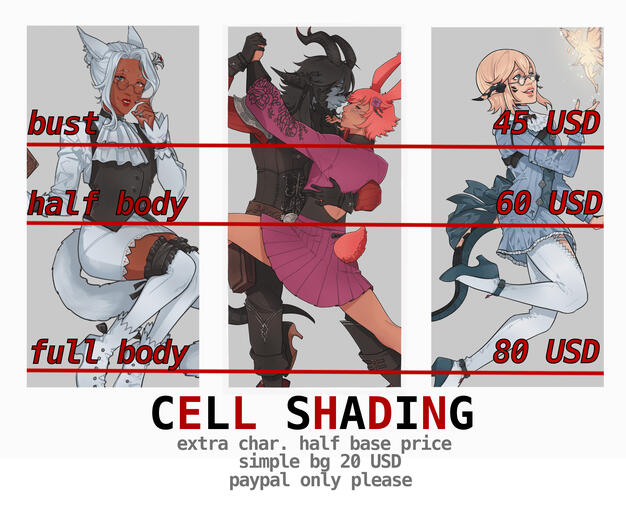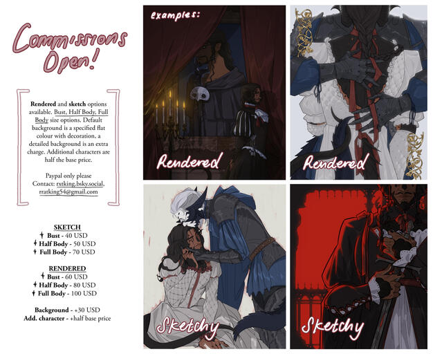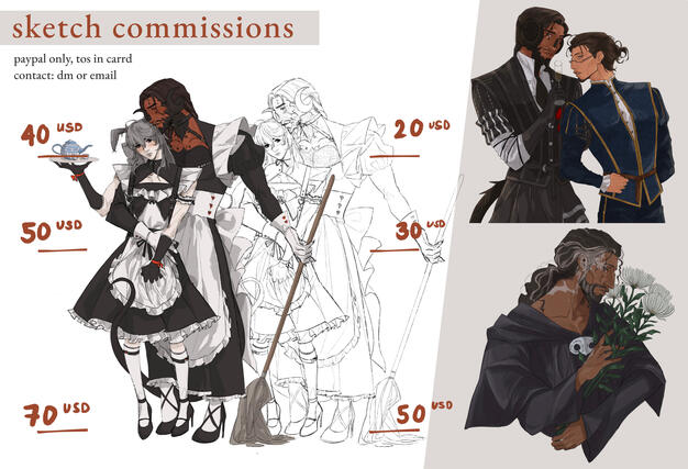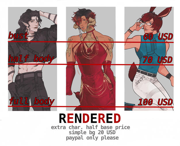 simple backgrounds with scenery are an extra charge+ commissions usually take around 5 to 8 weeks